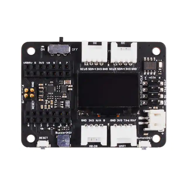 A powerful functional expansion board for Seeeduino XIAO of only half Raspberry Pi 4 size. It enables build prototype and project in easy and quick way. With its rich peripherals including OLED, RTC, expandable memory, passive buzzer, RESET/User button, 5V servo connector, multiple data interfaces… you could explore infinite possibilities of Seeeduino XIAO. Circuit python is also well supported by this board.