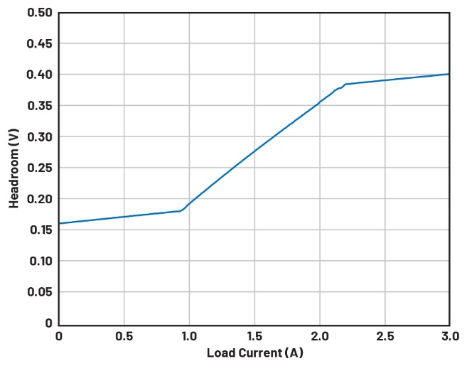 Figure 7 shows adaptive headroom control for the whole range of the LDO load current. The x-axis is the load current, while the y-axis is the headroom voltage of the LDO.