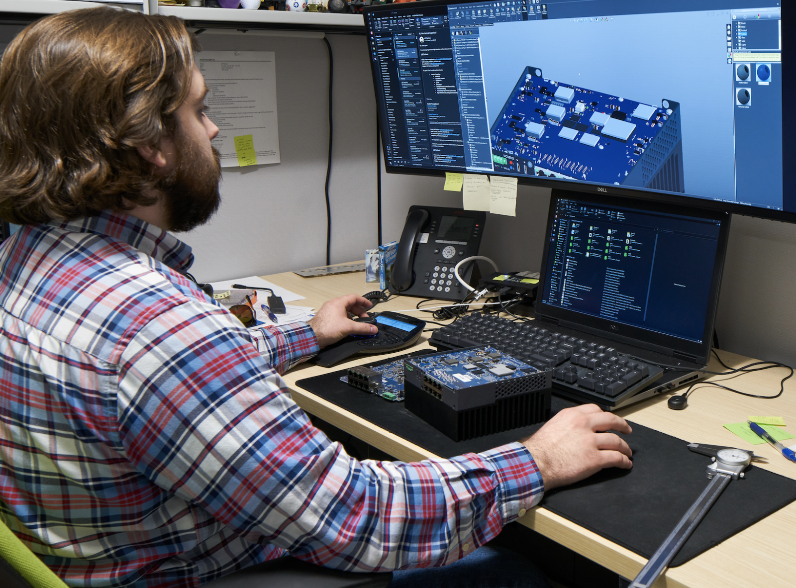 Image 1: An engineer measuring and modeling a circuit board design, illustrating how semi-custom solutions blend proven platforms with specific customizations. (Sealevel Systems)